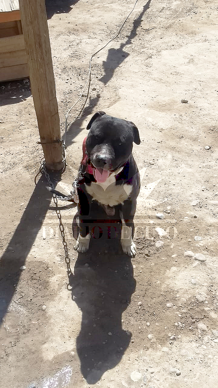 El can, color negro con algunas partes blancas, pesa unos 40 kilos y tiene aproximadamente 1 año y medio.