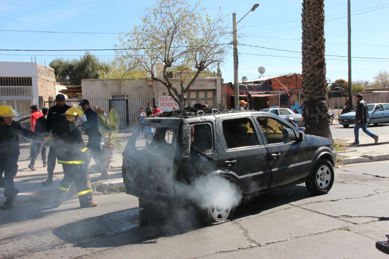 Las llamas comenzaron minutos después de las 14 y tardaron segundos en esparcirse por el lugar. Por razones que se desconocen, el fuego terminó con varios de los vehículos que se encontraban a la venta en la agencia de usados ubicada sobre Avenida Rawson, a metros de San Lorenzo.