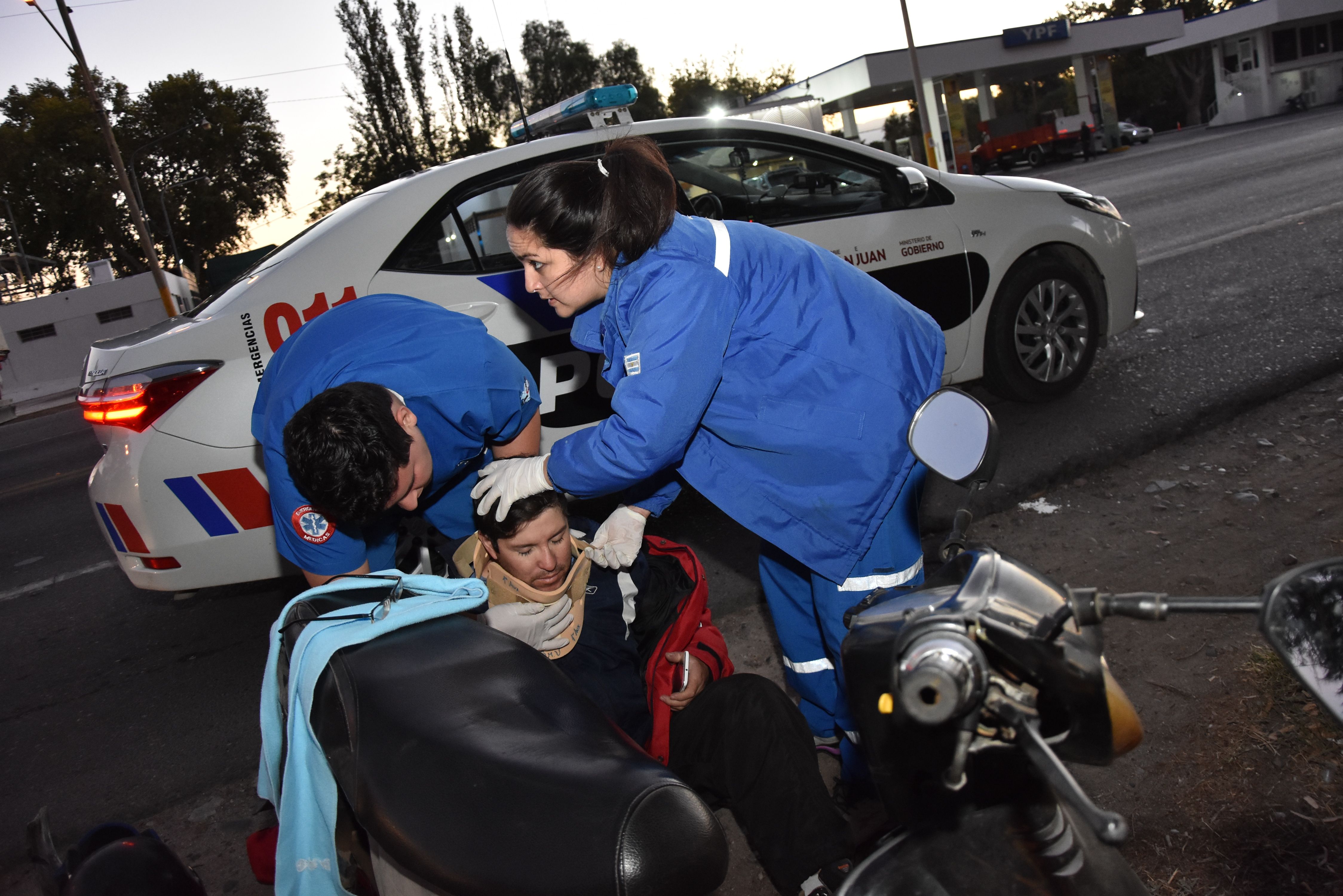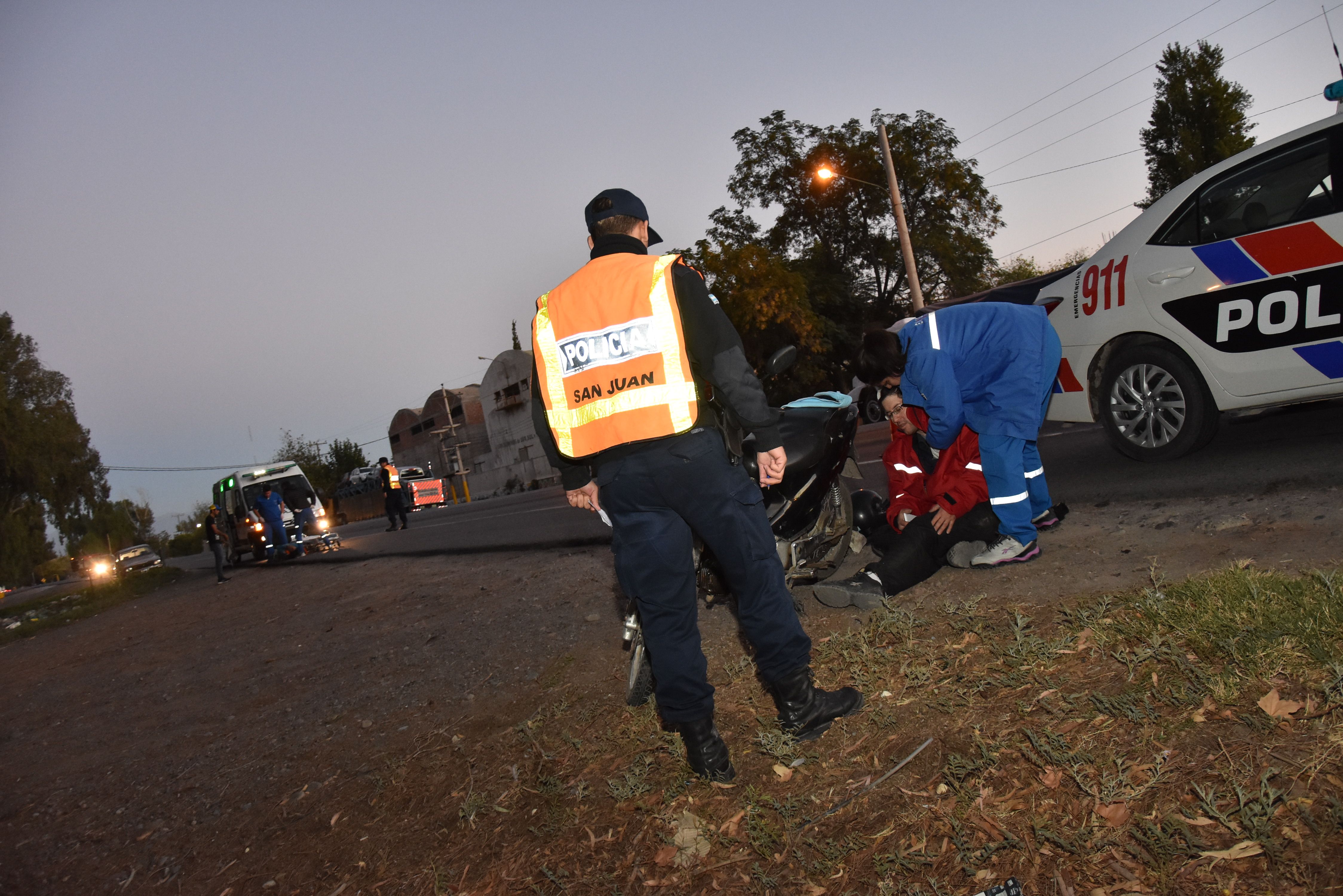 En la moto se conducía un hombre, aparentemente con el casco colocado pero desprendido, por lo que al caer tuvo algunas escoriaciones en la zona del rostro.