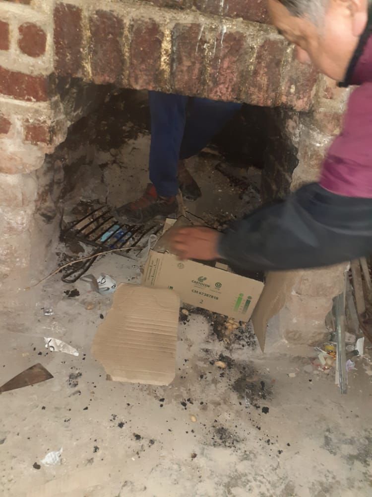 La fachada de la chimenea a leña donde quedó atrapado el malviviente.