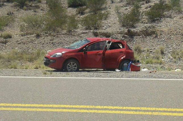 Un hombre de apellido Tapia perdió el control del auto Fiat Punto en el que viajaba junto a su esposa y dos hijos (3 y 14 años), y terminaron dados vuelta a un costado de la calzada. La familia es oriunda de Catamarca.
