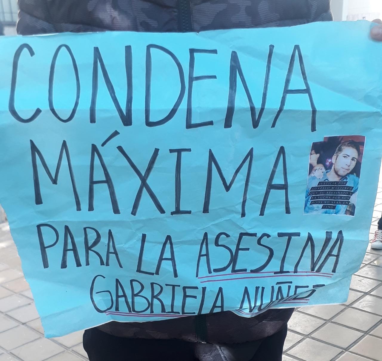 "Condena Máxima para la asesina", "La violencia no tiene género" y "Que tu asesinato y lucha por tus hijos no queden en vano", fueron algunas de las frases que se leyeron en los carteles que portaron al referirse al crimen a manos de Gabriela Núñez, de 28 años.