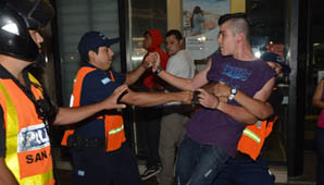 Según informaron las fuentes, el escándalo se generó cuando dos grupos de jóvenes se cruzaron en la plaza principal de la ciudad y la Policía intervino. En ese momento, algunos de los jóvenes rompieron las veredas y arrojaron pedazos de baldosas contra los uniformados, hiriendo a uno de ellos.