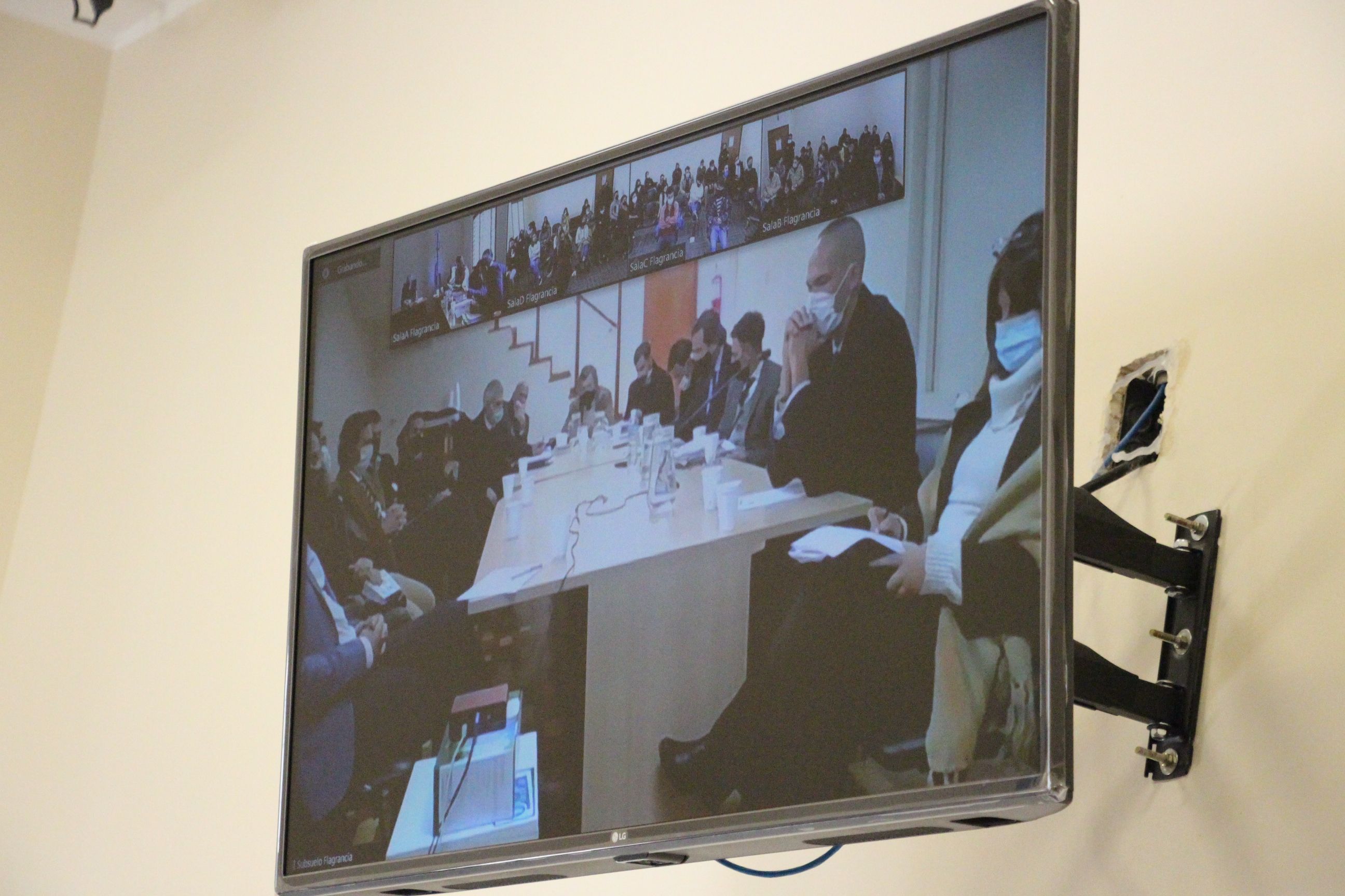 La comunicación entre las salas fue por videoconferencia, con un complejo montaje que demoró el inicio de la audiencia una hora. La misma comenzó a eso de las 16 y finalizó minutos después de las 19.