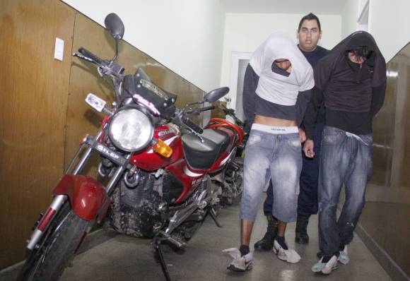Dos sujetos fueron detenidos cerca de las 23 del martes por la policía, luego de ser filmados por una cámara de seguridad cuando violentaban una moto Gilera 150cc para robarla en la esquina de Tucumán y General Acha, Capital. Los sospechosos fueron identificados como Erwin Félix (20) y Nelson Lucero (18). Están presos en la seccional 1ra.