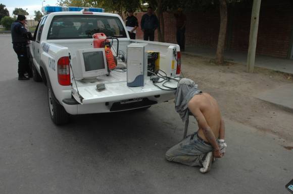 Los cabos Oscar De los Ríos y Juan Fajardo (Motorizada I), apresaron minutos después de las 10 de ayer a un sujeto, de apellido Agüero (31), justo cuando se llevaba de la escuela para alumnos especiales Alfredo Fortabat, en Concepción, Capital, una computadora completa, una máquina de soldar y un compresor. El ladrón aprovechó la ausencia momentánea del portero