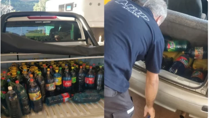Inspectores de la Dirección General de Aduanas evitaron el contrabando de más de 300 litros de combustible que pretendía realizar una persona oriunda de Paraguay en botellas de gaseosas, aceite y bidones plásticos que llevaba en su auto.