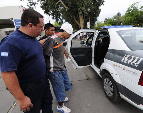Un delincuente fue descubierto ayer robando en una casa y, por intentar escapar, cayó de una medianera y sufrió un importante corte en la cabeza. Le tuvieron que hacer 12 puntos de sutura y lo llevaron preso a la Seccional 17ma de Chimbas. El detenido es Franco Javier Díaz (21), alías “El Chavo”. Los oficiales Julio Aballay y Gonzalo Ceballos del Comando Radioeléctrico lo apresaron al mediodía con toda la cabeza ensangrentada en una casa de calle Centenario, a metros de Mendoza. El joven había roto una puerta y pretendía robar algunos artefactos cuando apareció el dueño, de apellido López. Fue ahí que el ladrón intentó fugar trepando a la medianera y se precipitó de cabeza.