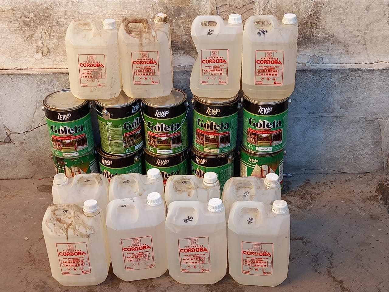 Ya con la orden del Juzgado Correccional se allanó una vivienda ubicada sobre calle Urquiza, en Capital, donde se secuestraron 12 bidones de cinco litros de thinner.