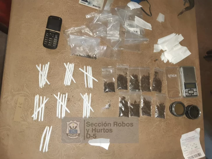 En uno de los domicilios, los uniformados encontraron los elementos denunciados como robados, perto también 10 bolsas con cigarrillos de marihuana en su interior, una balanza digital de precisión, papeles de lillo varios, un picador metálico y una planta de cannabis.