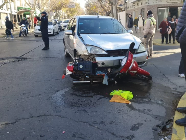 Cerca de las 10 de la mañana un accidente entre una moto y un auto alteró el tránsito en una concurrida esquina céntrica. Como consecuencia, un motociclista resultó herido.