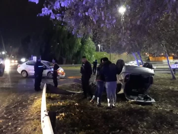 Por el fuerte impacto, el Chevrolet volcó y quedó en el sector verde de la Circunvalación sobrepasando el
