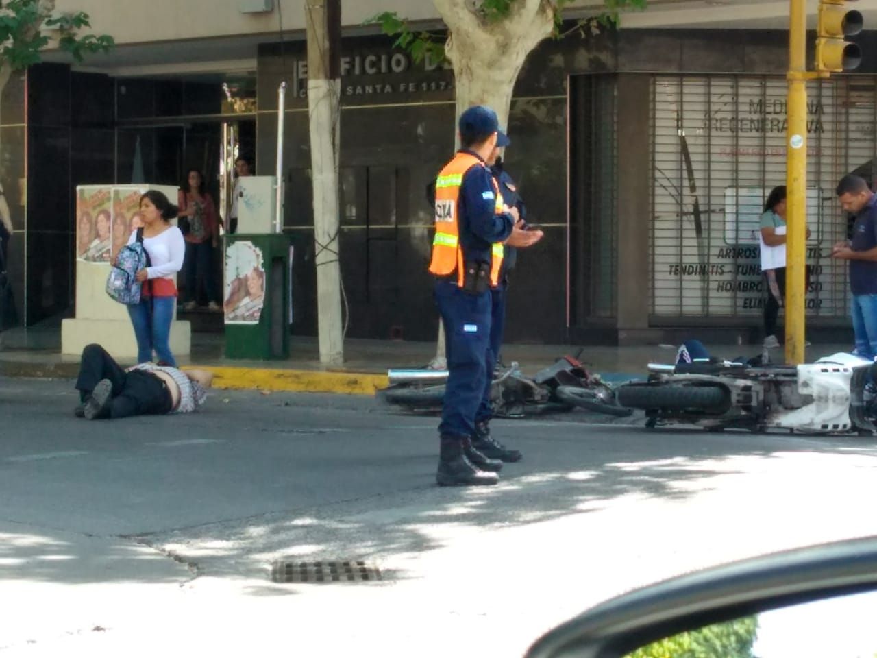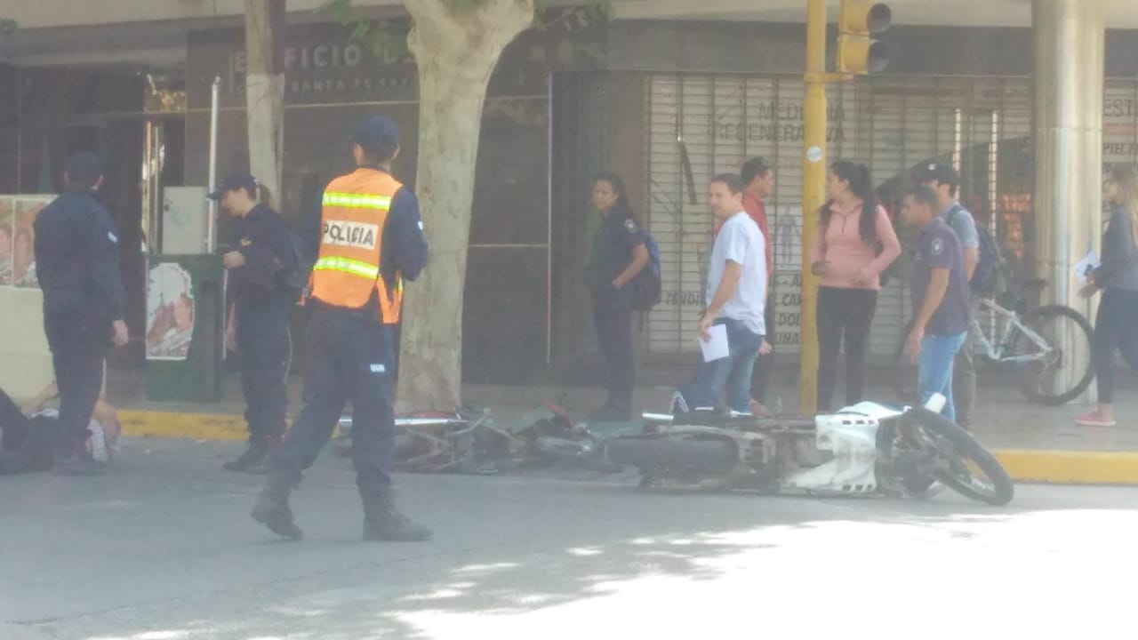 Pasado el mediodía de este jueves, se registró un nuevo accidente de tránsito en el cruce con semáforos de Santa Fe y Entre Ríos, Capital, que dejó como saldo dos motos con serios daños y un joven hospitalizado.