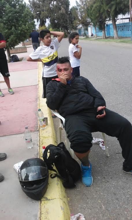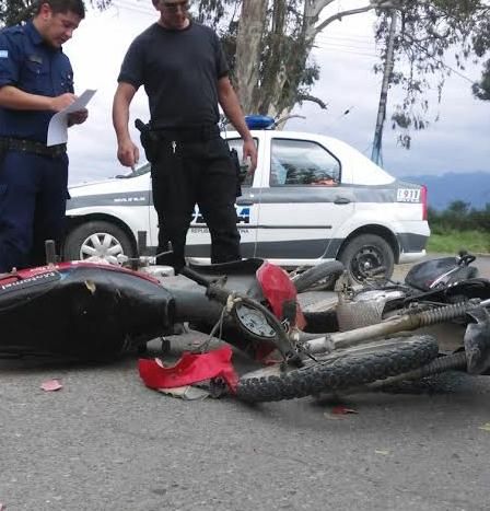 Durante el mediodía de hoy se produjo un fuerte accidente de tránsito entre dos motos, en el cruce de Boulevard Anacleto Gil y calle Mendoza, en Carpintería.
