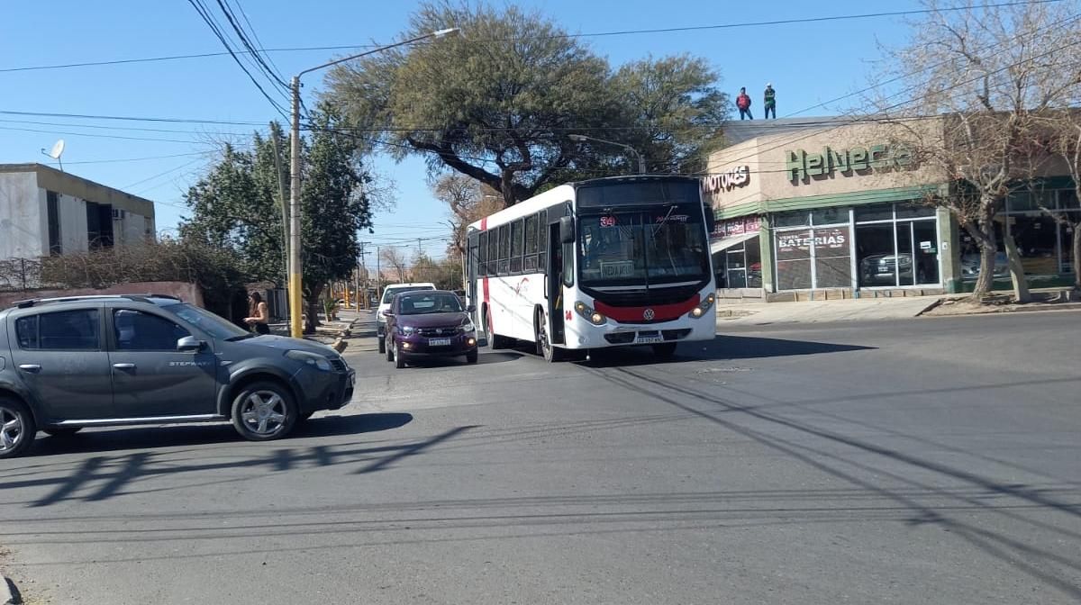 Sobre el mediodía de este martes se registró un fuerte accidente de tránsito en un cruce sin semáforos en el límite de Capital y Santa Lucía, entre un auto y un colectivo.