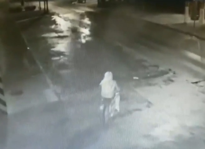 Sin mediar palabras, uno de los motochorros la derribó con un golpe en la cara y luego comenzó a patearla, mientras el otro esperaba en la moto. La secuencia quedó evidenciada en un video que captó una cámara de seguridad y que fue difundido por las redes sociales.
