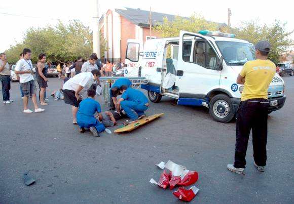 Todo sucedió ayer minutos antes de las 19. A esa hora, Víctor Silva (25) manejaba una moto Cerro 110cc. junto a su pareja, Fabiana Woltrin (27), hacia el Este por República del Líbano, dijeron en la policía. Al llegar al cruce con 25 de Mayo, se toparon con un camión Daihatsu Delta de la firma "Mudanzas San Juan", que conducía al Sur, Fernando Martínez (31), señalaron las fuentes.