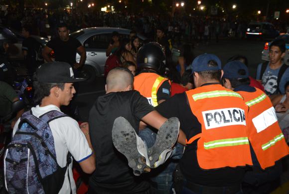 Seis menores demorados, un móvil dañado y un policía agredido fue el saldo que dejó ayer a las 20 un enfrentamiento entre dos grupos de adolescentes en la Plaza 25 de Mayo, en Capital. Se lanzaron proyectiles y tras la pelea, hubo corridas por distintas cuadras que provocaron un enorme revuelo en ese sector del microcentro.