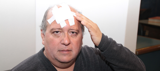 San Juan, 18 de septiembre.- Rubén Aciar (48) viajaba con su asiento (en la ubicación 45) algo reclinado y la cortina entreabierta, porque estaban a 10 minutos de la Terminal sanjuanina. A la altura de Calle 5 sintió un estruendo en la ventanilla, atinó a cubrirse la cara pero un proyectil ya había golpeado en su frente, rebotado y golpeado a la pasajera que estaba sentada al lado, para terminar el raid en la cara de otra mujer que estaba con un bebe en la otra fila de asientos. Gritos, revuelo y a los 200 o 300 metros el colectivo frenó, para seguir luego a Urgencias del Rawson.