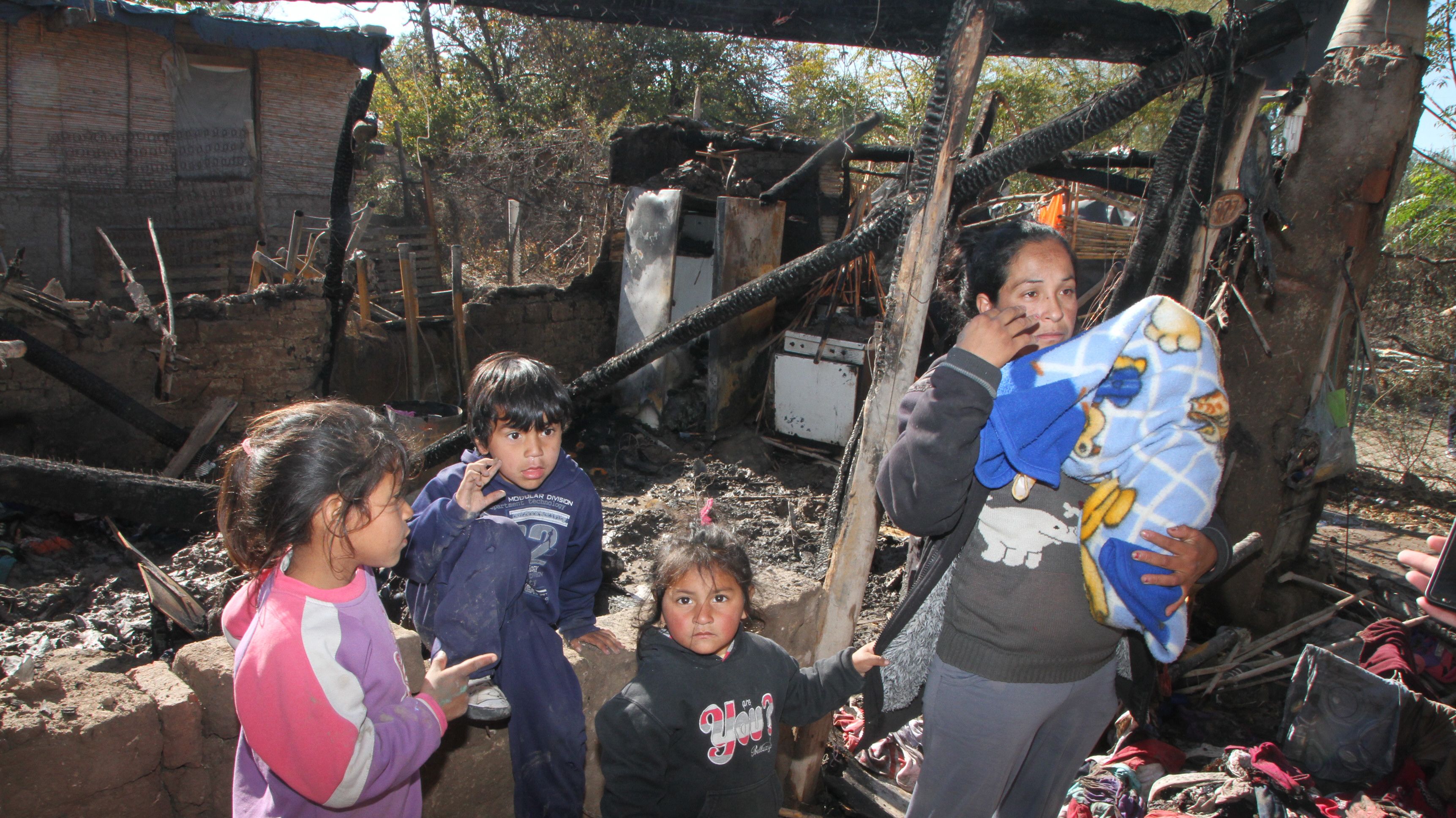 Una mujer de escasos recursos y sus 6 hijos quedaron en la calle después de que un feroz incendio en su precaria vivienda devorara todas sus pertenencias. El siniestro ocurrió en la mañana de ayer en un pequeño rancho de 4 x 3 metros de adobe, caña y palos, ubicado en el centro del "Campito II" (así lo bautizaron los vecinos), una zona de difícil acceso donde sólo se puede entrar a pie por un callejón, en Villa Dolores, Caucete. Según los investigadores policiales, no se descarta que haya sido intencional.
