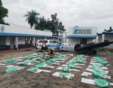 Unos 700 kilos de marihuana fueron secuestrados en las últimas horas por personal de Prefectura Naval, tras una persecución en el río Paraná, en la localidad correntina de Itá Ibaté. Según fuentes de esa Fuerza, la lancha provenía de Paraguay, pero el conductor se escapó cuando le dieron la voz de alto. Al final, consiguió escabullirse luego de abandonar el vehículo, en la que los uniformados encontraron 973 panes de marihuana que pesaron 700,810 kg.