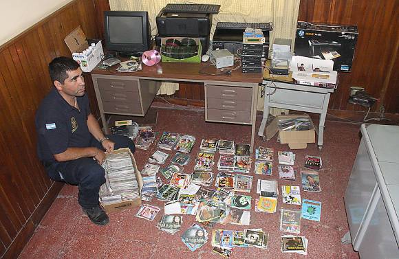 Un total de 796 discos de películas, música y videojuegos piratas, 11 lectoras, 3 impresoras, una PC completa y otros elementos, secuestraron ayer en la mañana policías de la comisaría 2da. en dos viviendas de Chimbas y Capital. Un hombre, de apellido Carrizo (35), está preso por violar la ley de propiedad intelectual, según la policía.