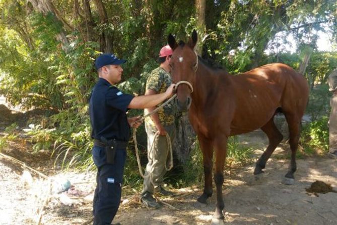 Un caballo que había sido robado el 18 de marzo pasado de una finca de General Acha y Ruta 40, Rawson, fue encontrado ayer por efectivos de la Subcomisaría de Médano de Oro en unos montes de callejón Muñoz, cerca de Abraham Tapia, Médano de Oro. En la Policía informaron que el animal tenía las patas lastimadas y que seguían buscando a los ladrones.