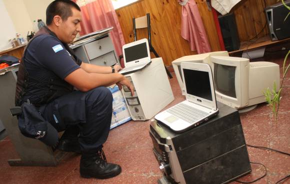 El 14 de octubre pasado, ladrones entraron a la escuela Andina antes del ingreso del Policía por las noches y se llevaron 18 netbooks, una PC, un DVD, 2 microscopios, 3 estabilizadores, una calculadora, 1 teléfono, 5 juegos de parlantes, 2 routers y 4 pelotas. Enseguida, policías de la Seccional 9na. recuperaron 7 netbooks, el grueso de las otras cosas y apresaron a un joven de 20 años. Continuando con la investigación, ayer los pesquisas allanaron los barrios cauceteros Nikisanga y Marayes. En una de las viviendas hallaron otras 2 netbooks y en la otra, el resto de los aparatos, informó la Policía.
