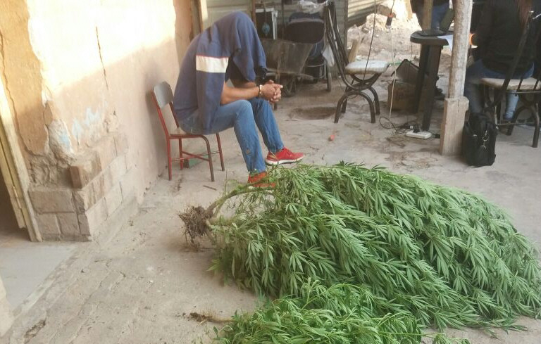 Evidencia. El detenido junto a las plantas de Cannabis sativa durante uno de los procedimientos.