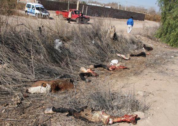 Dos caballos fueron faenanos y sus restos fueron encontrados ayer en la mañana por un vecino en un descampado situado entre el barrio San Lorenzo y el Lote Hogar 21, en Santa Lucía. Ese mismo hombre dio aviso al 911 y anoche efectivos de la Seccional 29na intentaban localizar al propietario de los animales, señalaron en la Policía.
