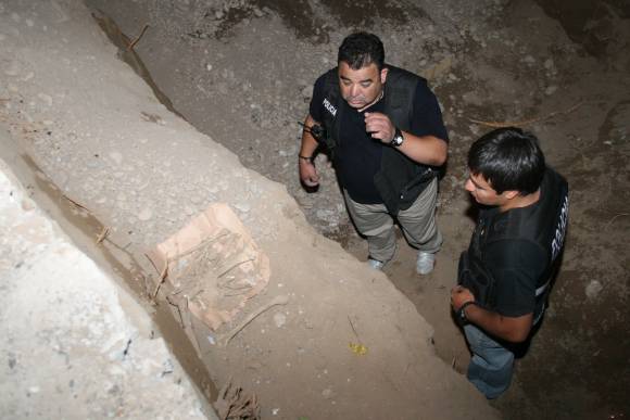 Restos de un cráneo, costillas, al menos cuatro huesos largos de brazos y una pierna, y otros trozos pequeños de huesos humanos fueron encontrados ayer en la mañana como a 1,60 de profundidad en la zanja abierta para la obra cloacal sobre calle San Luis, metros al Oeste de Catamarca, Capital. El hallazgo se produjo alrededor de las 10,30 cuando usaban la retroexcavadora en el trabajo, pero la policía se enteró del descubrimiento recién por la noche. Luego de un primer vistazo a los restos por parte de los pesquisas de Homicidios y Criminalística, se estimó que los huesos son de vieja data. Es más, un ingeniero de la obra aseguró que el pavimiento de la calle bajo la cual estaban los huesos, no sufrió modificaciones desde que fue construido, por lo menos 25 años atrás.