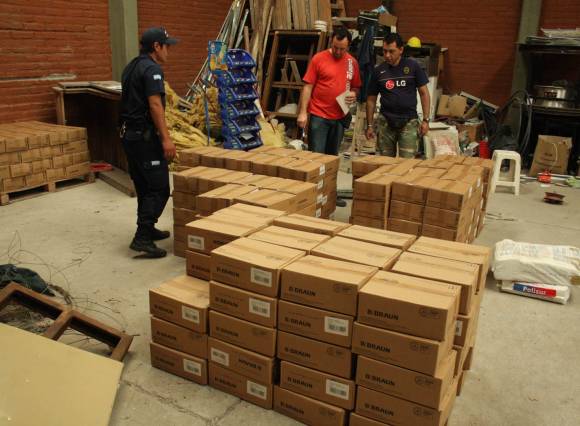 Iban a buscar algunas herramientas que habían desaparecido: una amoladora, un taladro y otros elementos que habitualmente se usan en la construcción. Pero los efectivos dirigidos por el oficial inspector Servat, de la comisaría 2da., se encontraron con que en el mismo galpón (ubicado en Avenida Rioja 1050 Norte) donde estaban almacenadas placas de yeso y premoldeados antihumedad, además de otros materiales de construcción, había 254 cajas conteniendo cada una 10 sachet de suero fisiológico, como el que se usa en los hospitales para las personas internadas. De inmediato, la Policía pidió la presencia de alguna autoridad de Salud Pública, para que tomara intervención en el hecho, presentándose el encargado de la División Farmacia, Mario Carmona.