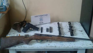 Luego, en el segundo de los operativos, dieron con un verdadero arsenal en casa de un sujeto: entre otras cosas encontraron una carabina semiautomática calibre 22, una caja con 32 proyectiles, una pistola semiautomática de gas comprimido, dos miras telescópicas y un cinto portacartuchos.
