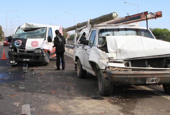 El chofer de una Fiat Ducatto sufrió ayer al mediodía heridas leves en un choque múltiple en avenida de Circunvalación, metros al Este de España, Capital. Según la Policía, un camión Iveco frenó por la maniobra de otro conductor y una Ford F100 lo chocó de atrás. A este último rodado lo impacto la combi (foto) y Nicolás Almada (27) salió herido.