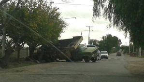 Según informaron fuentes policiales a Diario de Cuyo Online, el conductor no calculo bien y la rueda derecha trasera del camión termina cayendo a la cuneta. El hecho pudo pasar a mayores, de no ser por un árbol que se encuentra en la zona, que le sirvió al vehículo de gran porte de soporte y así evitar que terminara volcando.