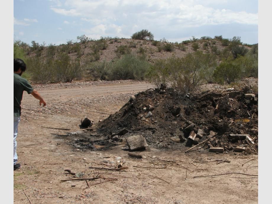 El cadáver se encontraba en una pequeña hondonada al lado de un montículo de escombros a la vera del viejo camino a Mogna, a unos 900 metros de la Ruta 40. La suposición inicial fue que la víctima había sido trasladada hasta ese lugar y rociada con algún combustible para incinerarlo por completo, porque a simple vista no había en la escena huellas de alguna pelea.