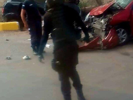 El siniestro vial entre una camioneta Renault Duster y un auto Citroen C3 en una transitada esquina de Albardón, produjo que el conductor del primer vehículo debiera ser trasladado hasta el Hospital Rawson debido a un considerable corte que recibió en la cabeza.
