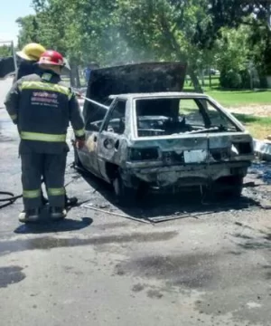 Un hombre que se dirigía ayer a trabajar sufrió un percance en pleno viaje por Santa Lucía que lo dejó sin cumplir con su obligación y sin su auto: un incendio que comenzó en el habitáculo del motor destruyó por completo el rodado.