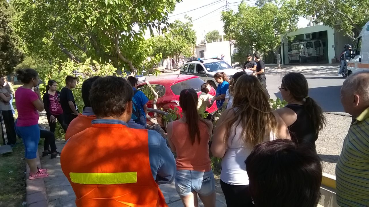 En un abrir y cerrar de ojos, una mujer que iba con su hija camino a un colegio terminó cruzándose de carril, derribando un árbol e impactando otro, para acabar con dos de las ruedas metidas en una cuneta. El accidente ocurrió este mediodía en el interior del Barrio Camus, en Rivadavia.
