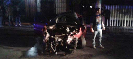 El episodio sucedió pasada las 5 de la mañana donde un Peugeot 206 color bordó, con unas cinco personas abordo, terminó impactando contra un pilar, aparentemente por ser chocado por otro vehículo que se dio a la fuga, según investiga la policía.