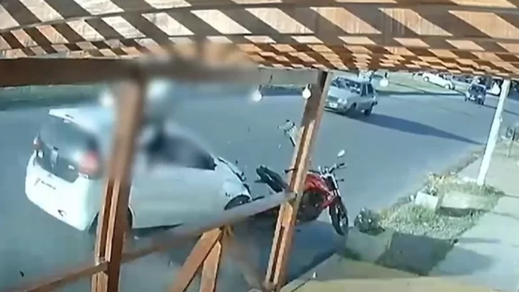 El rodado chocó la parte trasera de la motocicleta y el golpe hizo que volara por el aire hasta impactar con un poste de luz. La conductora, identificada como Denise Palacios, perdió el control del vehículo e impactó con tres postes más, hasta que se detuvo.