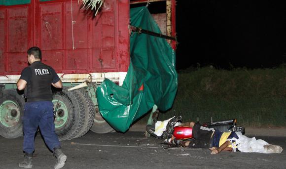 Un operario de la empresa Delphi murió en la noche del viernes al estrellarse contra el acoplado de un camión en Chimbas. En la Policía creen que fue porque la zona está poco iluminada y una carpa tapaba las luces traseras del acoplado. Pero la esposa del fallecido no descartó que el siniestro haya ocurrido por una falla humana de la víctima.