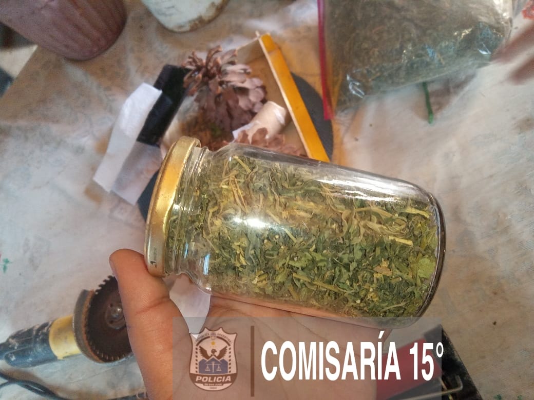 Según fuentes policiales, los pesquisas iban en busca de dos motos que habían sido sustraídas días atrás. Las mismas no aparecieron, pero en una de las viviendas los investigadores hallaron 5 plantas de marihuana de diversos tamaños, además de una bolsa hermética y frascos que tenían en su interior una mezcla de hojas y semillas por un peso de 374 gramos, precisaron en la Fuerza.