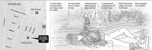 El cuerpo de la chica fue hallado en una acequia de Lemos y calle 8 ayer en la mañana. Desde la policía creen que el homicidio se produjo en otro sitio y luego la arrojaron donde fue encontrada.