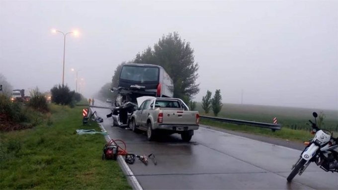 El personal profesional ha realizado tareas de observación y relevamiento de datos para la reconstrucción del accidente donde intervinieron 4 vehículos: un camión con acoplado que circulaba de oeste a este, una pick up en el mismo sentido que le precedía y por carril de circulación este a oeste, un colectivo de la empresa 20 de Junio y un automóvil Renault modelo Clio.
