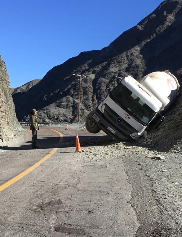Marcelo Damián Zárate (44) se salvó de lo peor al volcar en un camión Mercedes Benz cargado con hormigón, a la altura del kilómetro 268 de la Ruta 150, en Iglesia, a eso de las 8 de ayer. Al parecer, iba desde Jáchal rumbo a Rodeo, pero despistó y quedó de costado contra la ladera de un cerro, informó la Policía. El chofer no sufrió heridas de gravedad y quedó en observación en el Hospital Tomás Perón.