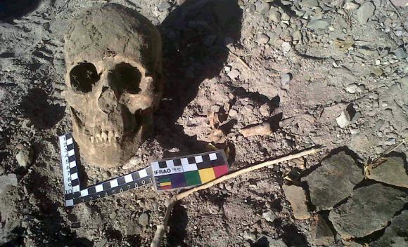 Pedro ‘Charo’ Paredes, viejo poblador de Rodeo, Iglesia, excavaba en el fondo de su casa para sacar arena, el viernes en la tarde, cuando se topó con un cráneo y otros huesos, además de restos se vasijas. En la Policía creen que, por la antigüedad y la presencia de la artesanía, se trataría de un indígena.