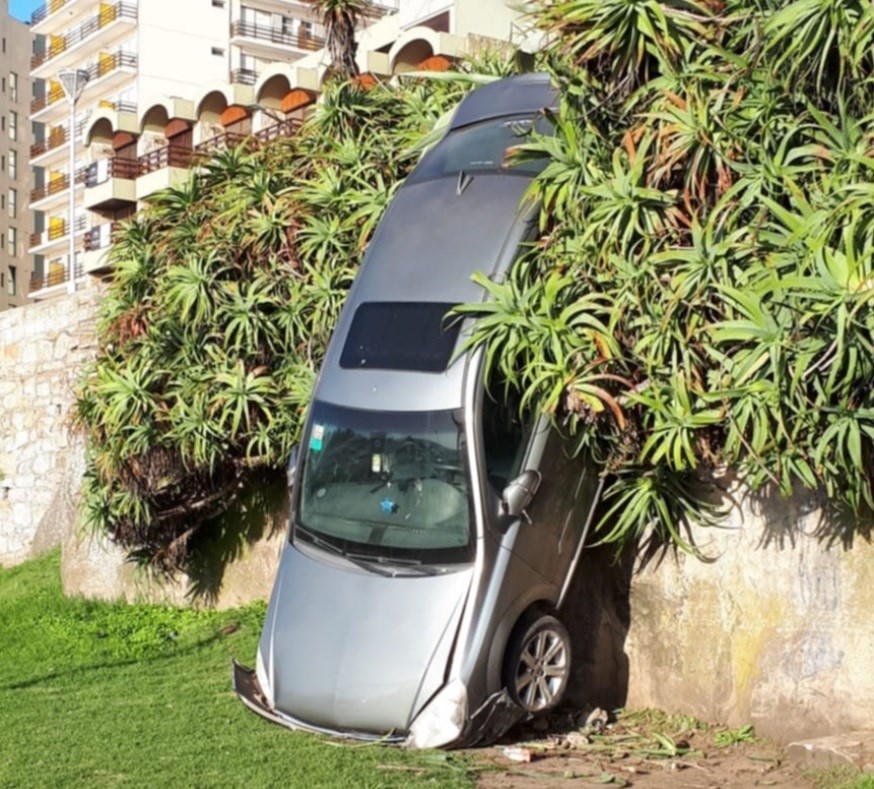 Este último dio contra el paredón de la costa, lo atravesó, cayó por la pendiente y quedó semivolcado.
