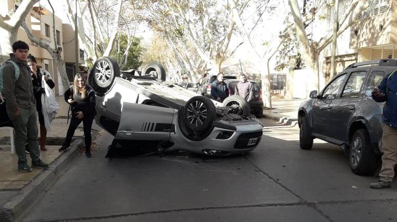 Según informaron testigos, un Fiat Palio circulaba por General Paz hacia el Este cuando, entre Rioja y Jujuy, impactó por causas que aún se desconocen contra una rueda trasera de una Renault Duster. En ese momento, la conductora del auto (enfermera del Hospital Rawson, de unos 25 años) perdió el control y terminó volcando en el medio de la calle.