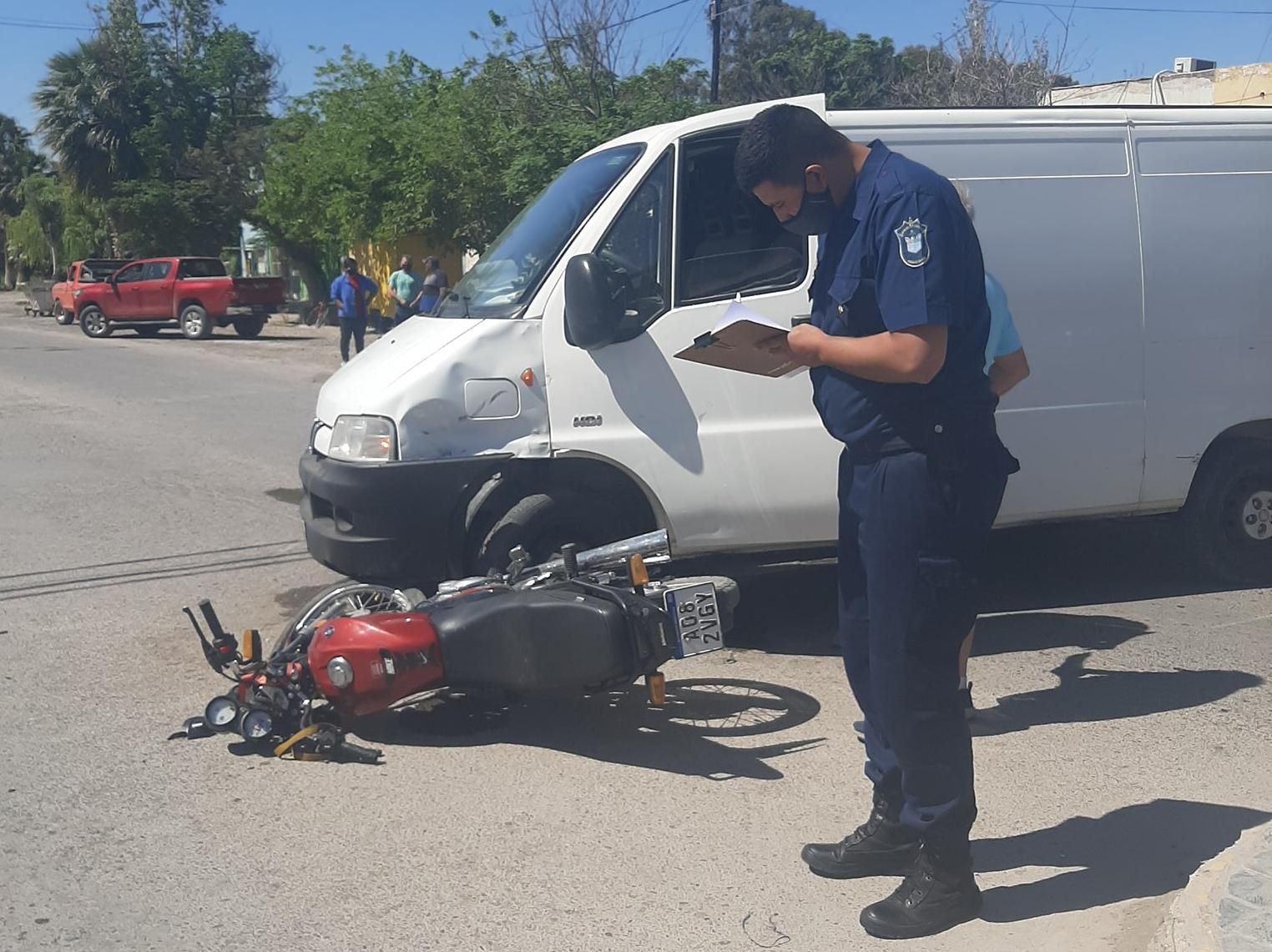 En el cruce de dos de las arterias más transitadas de Media Agua, Rivadavia y 25 de Mayo, se produjo el impacto entre una moto de 150cc y una furgoneta, cerca de las 15 de hoy miércoles. Producto del siniestro vial, el conductor de la moto, identificado como Nahuel Giménez (24 años), debió ser trasladado al hospital de la villa cabecera de Sarmiento, ante una seria lesión en una de sus piernas, que presumiblemente podría ser una fractura, además de padecer escoriaciones y contusiones en todo el cuerpo.